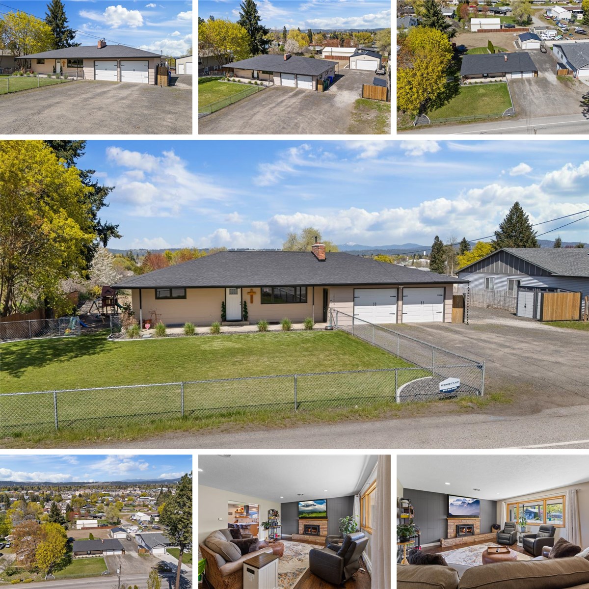Beautiful 4 bedroom, 2 bathroom daylight walk-out rancher with rich hardwood flooring, cozy main-floor brick fireplace, bright open kitchen, and stunning Mt. Spokane views. This wonderful home has recently updated bathrooms, fresh paint, new roof less than a year ago, new HVAC system and gas tankless hot water. The lower level has a large family room area, office, and potential to use as an Airbnb with its own entrance and plumbing in the wall to add a 2nd kitchen. Large custom deck with mountain views to the north, 24X24 shop with RV Power hookup, plenty of room to add a large garden area, pool, pickle ball court or additional outbuilding.