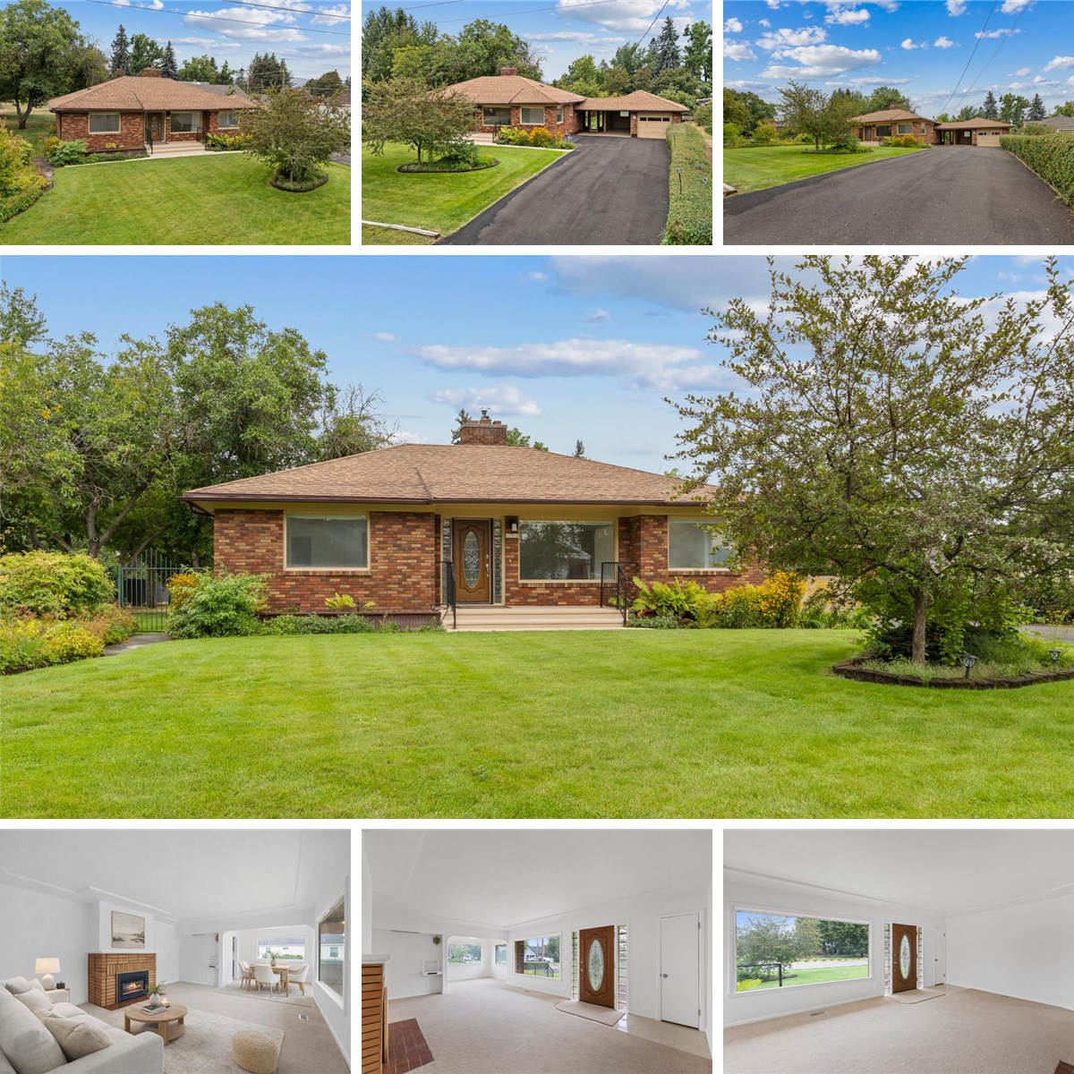 Welcome to this Spokane Valley gem, perfectly tucked away on over half an acre and just minutes from local favorites like Crimson Door Café and Ferraro’s Italian Restaurant. The timeless Mica brick exterior pairs beautifully with brand new gutters. Inside, enjoy a bright, move in ready home featuring original oak floors, fresh interior paint, fresh finishes, and thoughtful updates including stainless steel appliances, Corian countertops, and modernized systems for added peace of mind. The spacious, fully fenced backyard is ideal for gardening, play, or the addition of a future shop. Mature trees, a new asphalt driveway, and a charming front water feature enhance the outdoor appeal. The expansive lot and multi dwelling zoning offer excellent flexibility for income potential, multi generational living, or added space and privacy. Buyer to verify zoning and development potential. Located in the Central Valley School District, this property blends comfort, character, and room to grow.