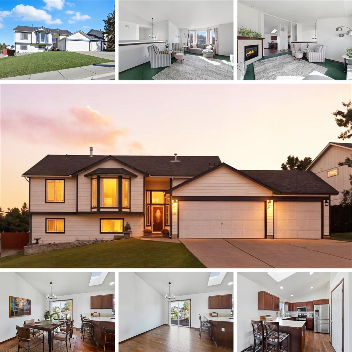 Spacious 5-bed, 3-bath home in a fantastic, family-friendly neighborhood within the top-rated Mead School District! This well-maintained home features an open layout with cathedral ceilings, informal dining, and a cozy gas fireplace—ideal for gatherings. The updated kitchen includes new stainless appliances and opens to a large Trex deck overlooking a huge backyard, and sport court — perfect for kids, pets, or entertaining. The fully finished daylight basement adds flexible space for a family room, home gym, guest suite, or game room. Generous bedrooms and thoughtful updates throughout, including new contemporary light fixtures inside and out. Gas forced air, central A/C, and a brand-new hot water heater offer year-round comfort. Located near Costco, restaurants, schools, and Mt. Spokane. Schedule your showing today!
