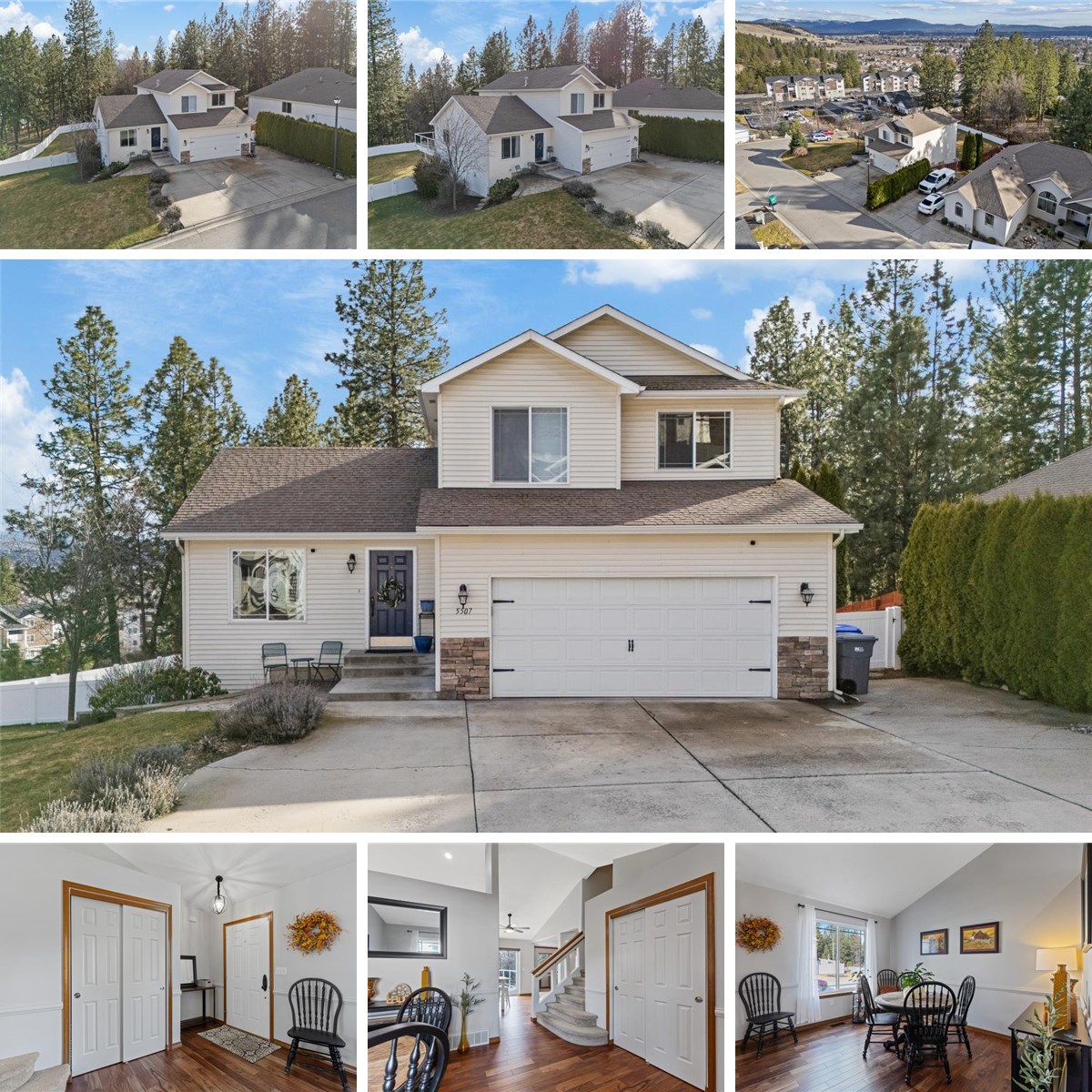 Private lane living with stunning Spokane Valley views! This updated Northwood home features a new fence, a refreshed kitchen with a granite countertop island, and stainless steel appliances. The interior is light and bright, with stylish finishes, spacious living areas, and a lower-level walk-out. The primary suite has a walk-in closet and an updated bath. There are 3 bedrooms, 2.5 bathrooms, and a finished basement (plumbed for an additional bathroom). Perfect for taking in the sights or entertaining on the upper deck or lower patio. Conveniently located near shopping, restaurants, and easy access to I-90.