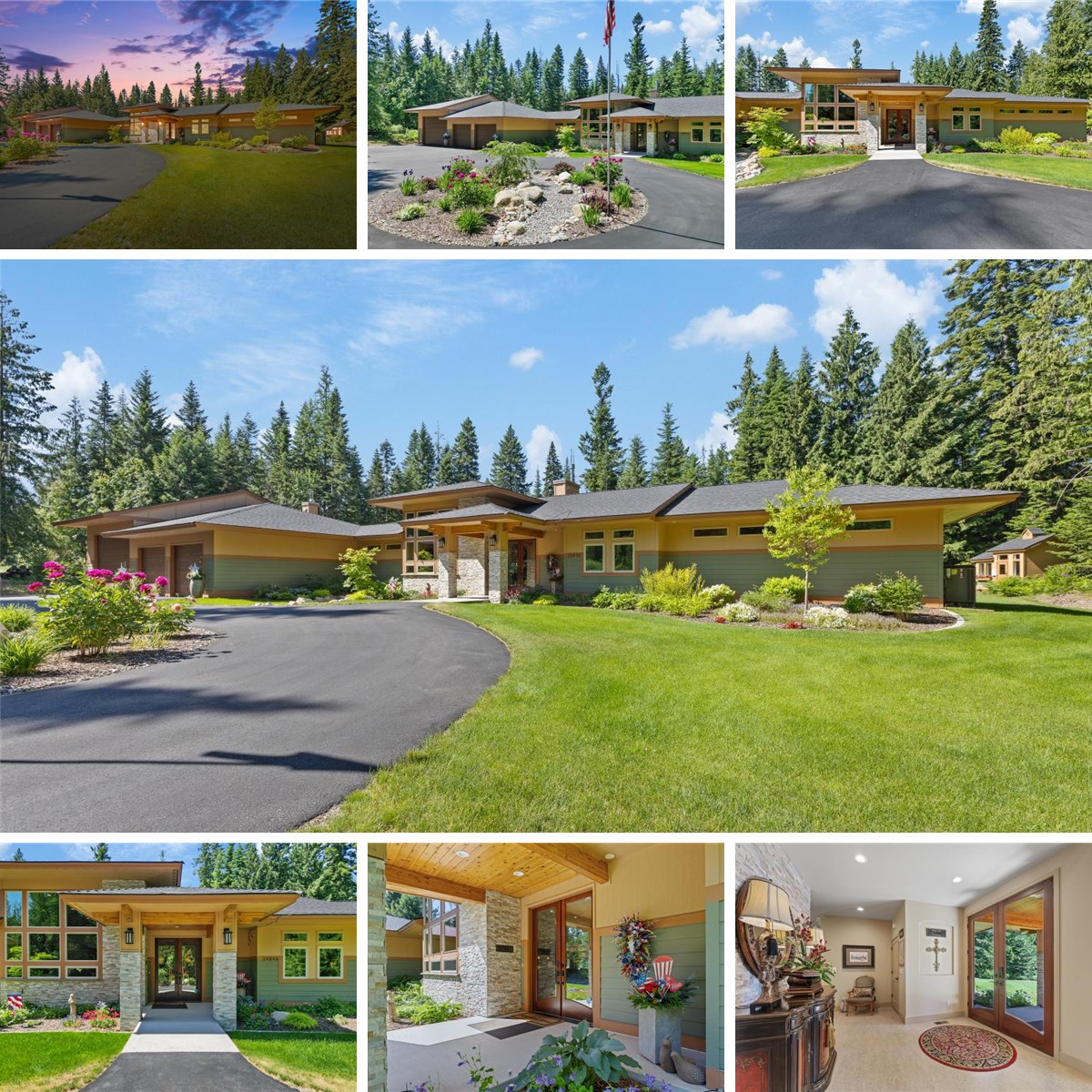 Architect’s Dream Home! As you drive down the meandering driveway lined with flower pots bursting with color, you are welcomed by an architectural masterpiece and stunning landscaping throughout. Natural light carries through the home, from the first steps through the large glass front doors to the floor-to-ceiling windows looking to the immaculate back yard. With an intentionally crafted single-level design inspired by Frank Lloyd Wright, every square inch is perfectly utilized. The true chef’s kitchen crafted with custom cabinets and woodwork and oversized pantry, is a home cook’s dream. The open-concept master suite overlooks the stunning backyard. The outdoor living space is ideal for year-round living in North Idaho. Entertain guests or simply relax to the quiet sounds of nature on your covered patio with a full fire place and relaxing garden with a water feature. All this, plus a HUGE attached garage/shop, means there is something here for everyone. Enjoy the convenience of a climate controlled attached shop space with pass through garage doors. This home is sure to impress you with the incredible attention to detail and perfection in care!