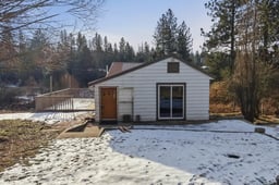 This charming country cottage with rare Dragoon Creek frontage, pairs a unique blend of elbow room and close-in convenience just minutes from Spokane. Situated on nearly an acre, this 2-bedroom, 2-bath home features over 1,400 square feet of thoughtfully updated living space. Vinyl windows, refreshed trim, and stainless-steel appliances—including double ovens—add modern functionality. The main-level bathroom is generously sized with double sinks, a deep soaking tub, and an oversized closet providing ample storage. Outside, the expansive lot offers flexibility and room to spread out, with the added bonus of creek frontage—an increasingly rare feature at this price point. Low-maintenance metal siding and roofing along with a new propane furnace add to peace of mind and ease of ownership. This property's affordability, sizable waterfront lot, and proximity to Spokane make it a truly unique offering.