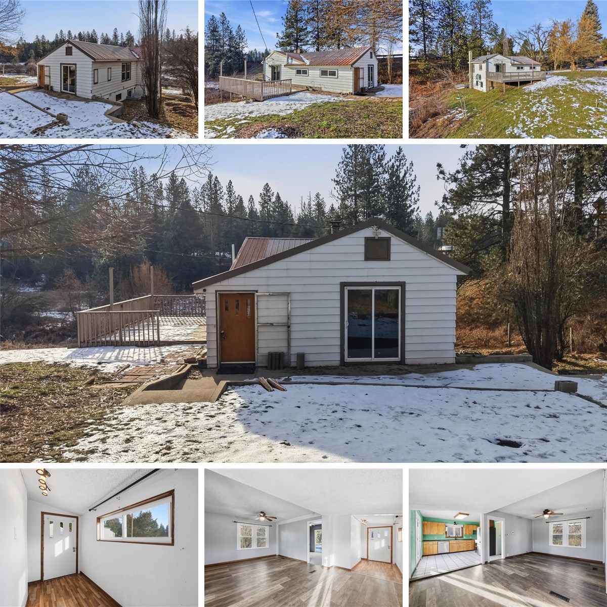 This charming country cottage with rare Dragoon Creek frontage, pairs a unique blend of elbow room and close-in convenience just minutes from Spokane. Situated on nearly an acre, this 2-bedroom, 2-bath home features over 1,400 square feet of thoughtfully updated living space. Vinyl windows, refreshed trim, and stainless-steel appliances—including double ovens—add modern functionality. The main-level bathroom is generously sized with double sinks, a deep soaking tub, and an oversized closet providing ample storage. Outside, the expansive lot offers flexibility and room to spread out, with the added bonus of creek frontage—an increasingly rare feature at this price point. Low-maintenance metal siding and roofing along with a new propane furnace add to peace of mind and ease of ownership. This property's affordability, sizable waterfront lot, and proximity to Spokane make it a truly unique offering.