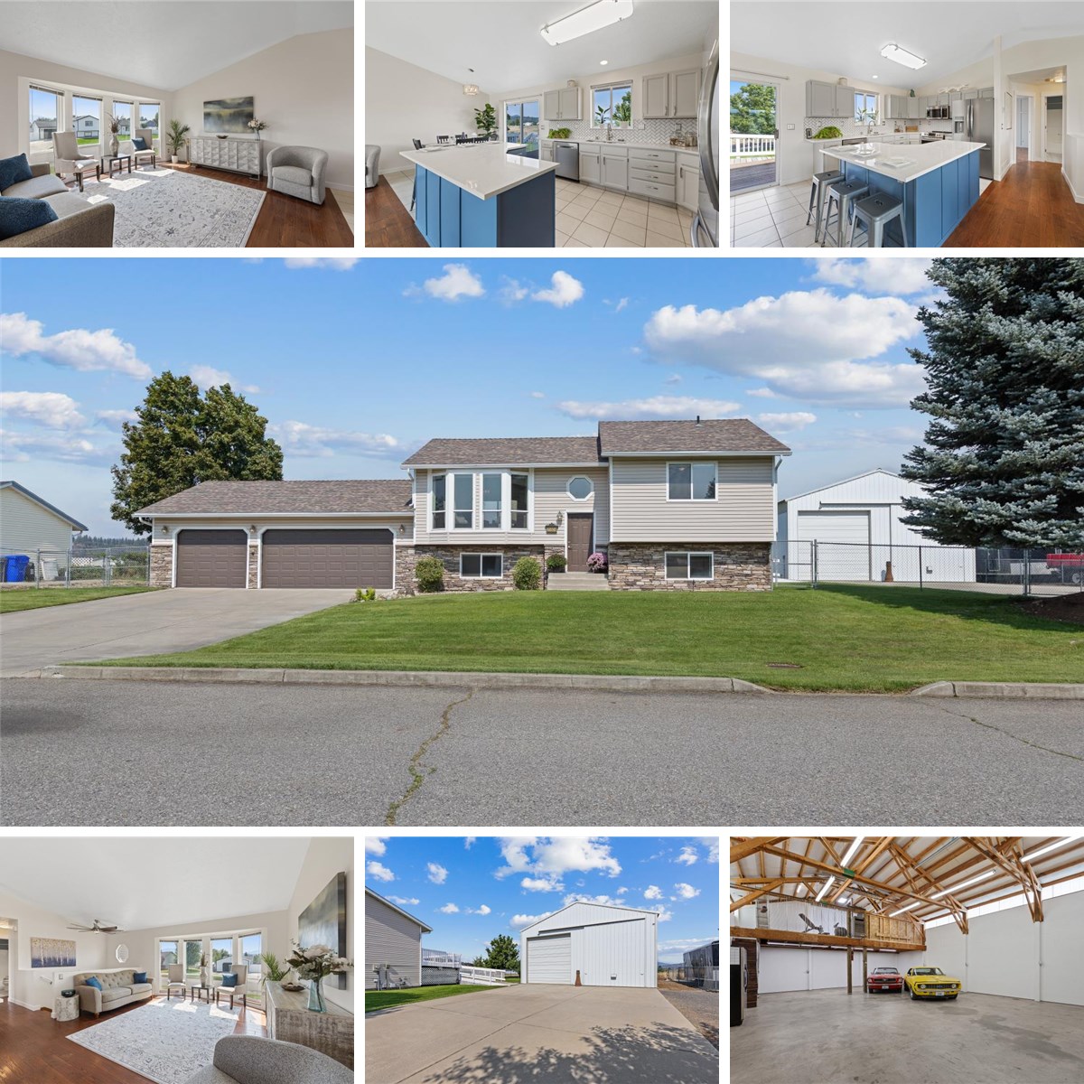 Dream Shop Alert!! Beautifully refreshed 5-bed, 2-bath home with a rare 30x40 (1,200-sf) heated shop with room for RV's or toys and 220V service plus a 3-car attached garage. Inside the home: fresh paint, new kitchen countertops, new lower-level carpet, and crisp craftsman trim. Big-ticket updates in 2015 (roof + HVAC). Outdoors you’ll love the fully-fenced yard with fruit trees, garden space, sprinklers, room to play, and plenty of parking spots. Within 30 minutes of downtown Spokane or CDA yet tucked in the East Farms / Newman Lake pocket — perfect for hobbyists, recreational storage, and anyone who needs real workspace. Seller is a LicensedReal Estate Broker in WA State