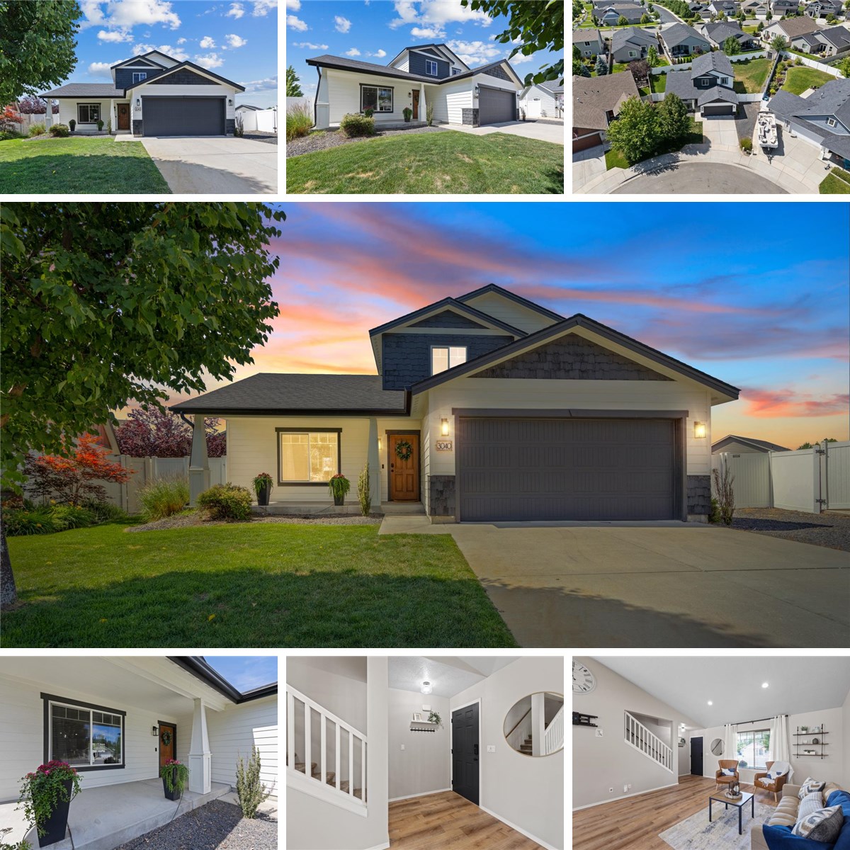 CDA PLACE MAIN FLOOR PRIMARY SUITE 1.5 STORY HOME! Located in an ideal quiet cul-de-sac location, this 4br/2.5 bath home has been tastefully updated and offers approx 1,726 sq/ft of living space. The main floor has vaulted ceilings, quartz kitchen counters, LVP flooring, gas range, and so much more! The backyard is fully fenced, landscaped w/sprinkler system. You'll love the layout with main floor utilities and primary suite, including spacious double closets and updated bath. The upper level is fantastic w/3 bedrooms, loft and main bathroom. The location is superb! Conveniently located near schools, parks and shopping! A MUST SEE!