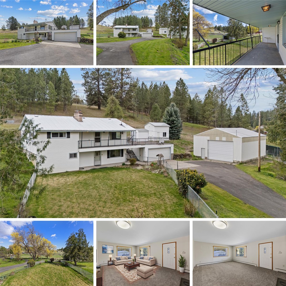 The roomy interior has 4 bedrooms, 2 bathrooms, convenient main floor laundry, and an attached 2-car garage, all freshly updated with new paint and carpet throughout. Enjoy the cozy warmth of hot water radiant heat too! Don't miss this unique opportunity to enjoy country living with all your vehicles, equipment, and hobbies accommodated—all while being just moments from South Hill amenities and urban conveniences.