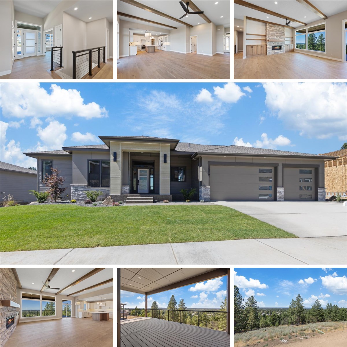 This stunning new build by Paras Homes showcases the perfect blend of quality construction, elegant design, and luxurious features-all set against breathtaking panoramic views. Inside, you will find engineered hardwood floors, exposed wood beams, and grand stone fireplace that brings warmth and character to the open-concept living space. The heart of the home is the chef-inspired kitchen, complete with high-end GE Cafe' appliances, quartz countertops, custom cabinetry, and designer lighting. Just off the kitchen, the expansive walk-in pantry includes detailed shelving and coffee bar, adding both function and charm. The primary suite is a private retreat, featuring a luxurious soaking tub, an oversized glass walk-in shower, dual vanities with light up mirrors, and spa-like atmosphere. Additional highlights include 3 + car garage and electrical panel wired for a future whole house generator. The lower level has a gas fireplace, 3 bedrooms, 2 bath's and access to the patio.